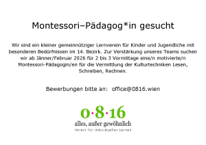 22.09.2025 - Wien - Schule: Lyra Montessori Lichtental sucht pädagogische Assistenz