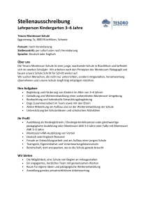 Die Tesoro Montessori Schule in 8803 Rüschlikon sucht eine/n Pädagog*in für die Altersgruppe 6 bis 12 Jahre. Deutsch- oder Englischsprachig. Pensum nach Vereinbarung, ab sofort oder nach Vereinbarung.